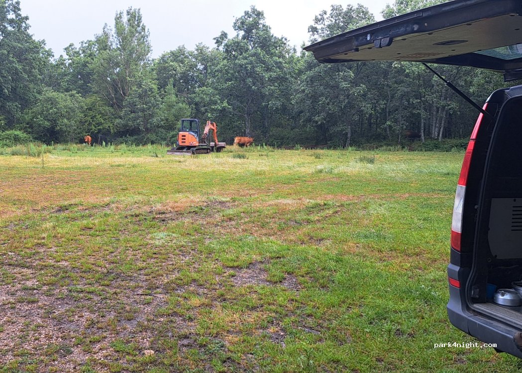 Solos en la naturaleza con las vacas. Muy agradable. La ubicación está mal, antes de la ubicación hay que seguir la señalizacion de parking para autobuses, unos 200m siguiendo el camino la esplanada se encuentra a mano derecha