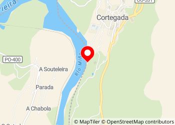 Parking situado a pies del río Miño,justo al lado del antiguo balneario de Cortegada,paraje idílico.Cafetería -terraza en dicho balneario.Hay un par de curvas cerradas pero se pasa bien,merece la pena por la belleza del lugar.