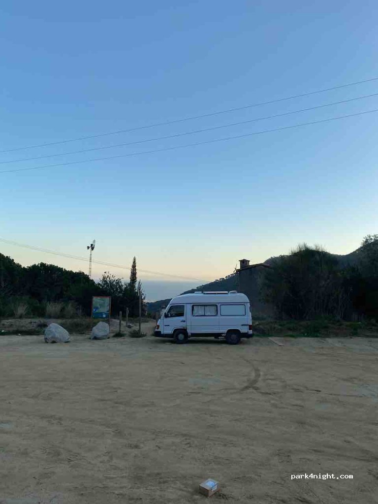 Sehr großer Parkplatz mit wunderbarem Blick Richtung Meer. War hier in der App fälschlicherweise als Tagesparkplatz kennzeichnet (inzwischen geändert), weshalb wir ihn in der Nacht nicht angefahren hatten. Anfahrt aus dem Ort 800 Meter sandiger und extrem unebener Weg bergauf.