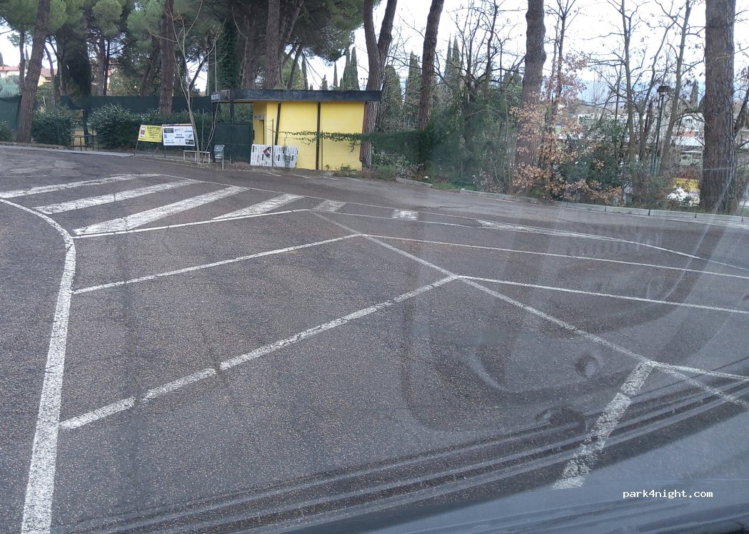 Ottimo parcheggio, di fronte ai campi sportivi, pianeggiante ed illuminato, a 5 minuti a piedi dal centro storico. Non abbiamo dormito ma ma la notte dovrebbe essere tranquillissimo.