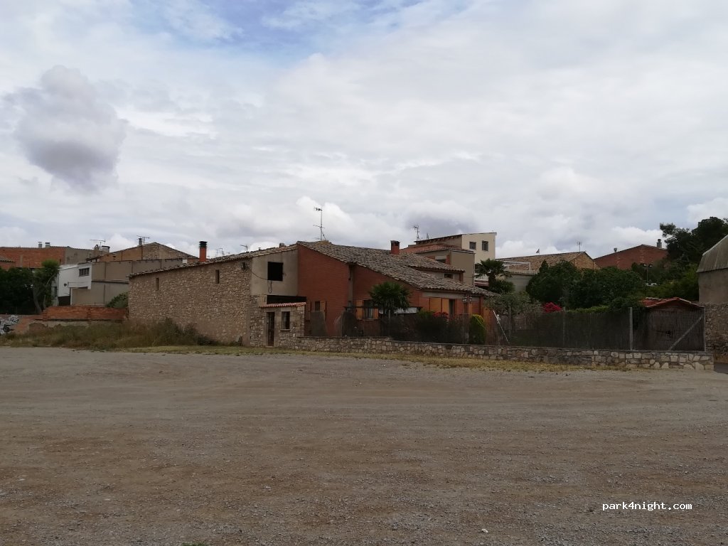 Grand parking de terre à l'entrée de cette belle ville. Accès très facile pour les grands ac. Pratiquement niveau et sans service mais pratique pour visiter la ville et passer la nuit si nécessaire. Près d'autres belles villes dans la région comme Guimerà ou Vallbona où il y a une zone activée.