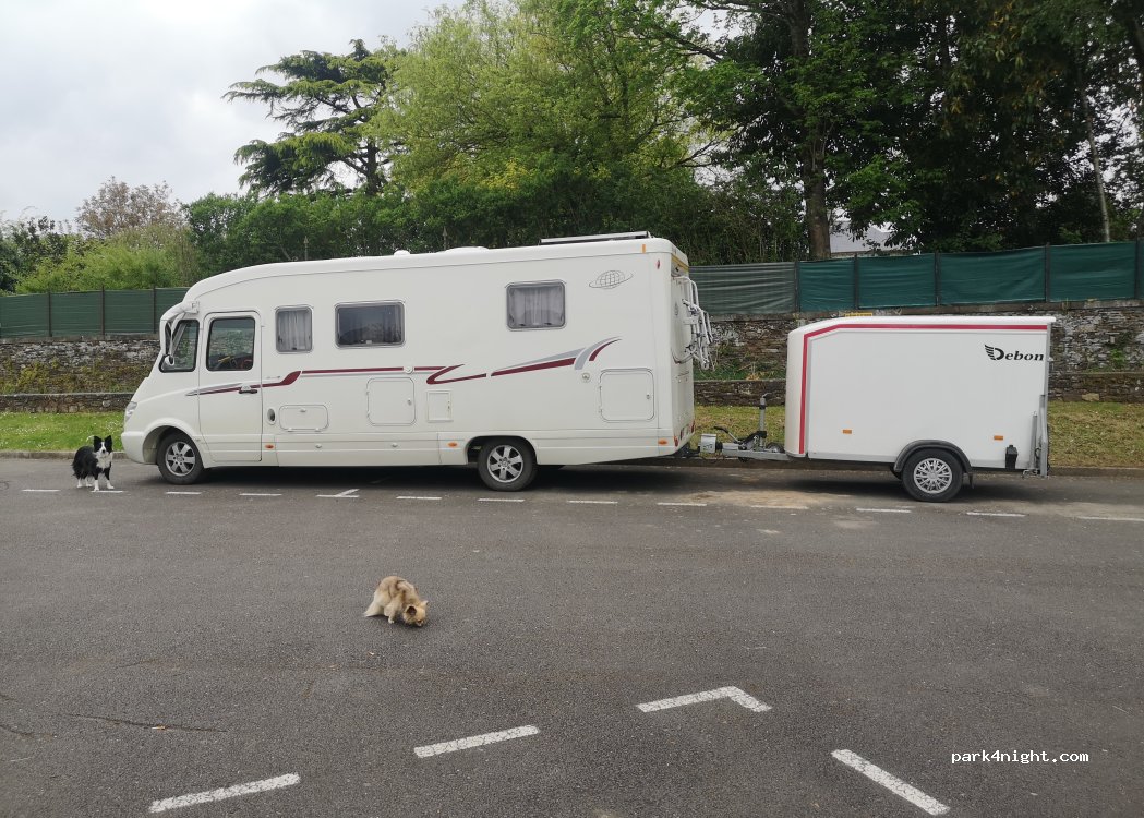 tout est dit avec les commentaires !une aire ideal ,ombre ,calme , service,emplacement bien délimité par des haies haute, intimité donc ! calme le top quoi !merci a cette commune si toute etait comme ça ! ferait la visite de ce beau village acheter qq victualles et boire un coup peut etre ! merite le detour, en plus il y a un jeu "tresor de bretagne " excellent ! que du beau que du bon !
