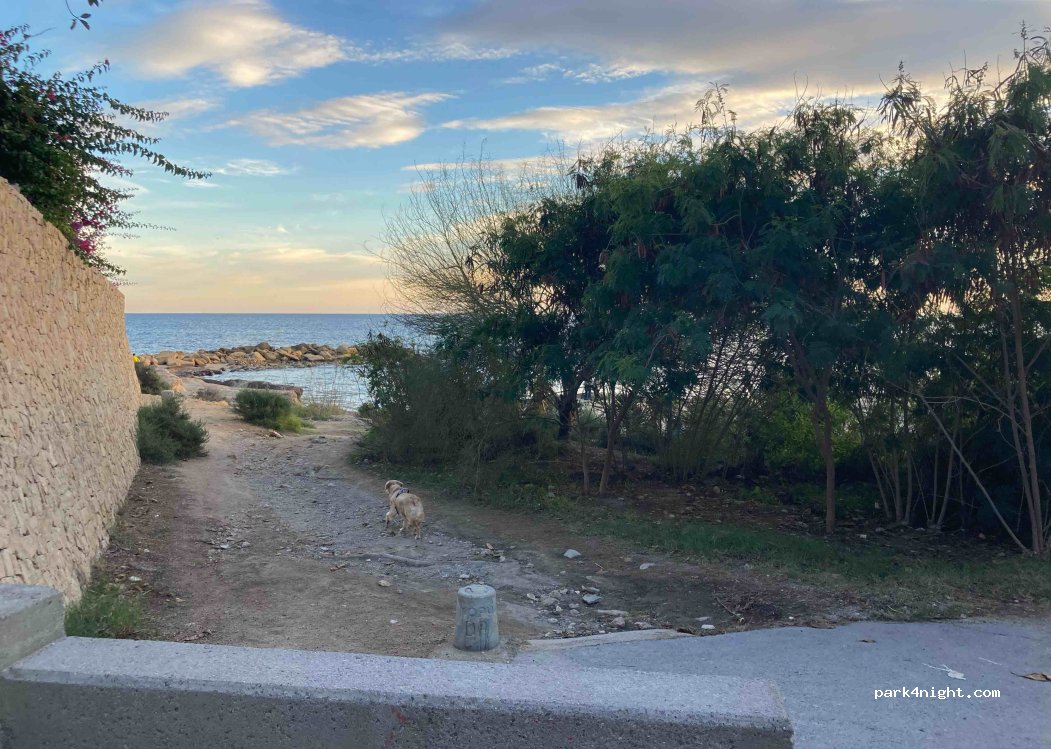 Es handelt sich um einen "normalen" Parkplatz in "Cala de la Palmera". Es gibt nur 8 Plätze. Außerhalb des Auto-/Van-Spots gibt es keinen Service. Was den Strand betrifft, empfehlen wir Steinstrandpantoffeln zum Schwimmen :)