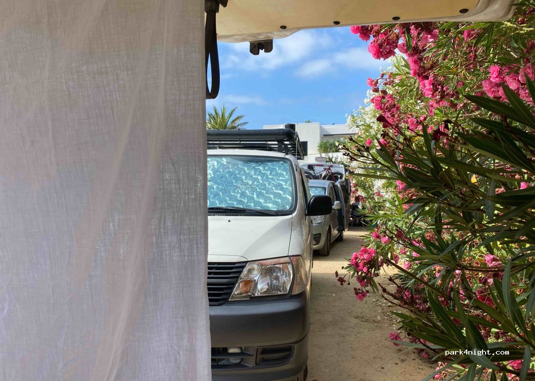 Muy tranquilo para dormir e ir a la playa de los alemanes. Para acceder hay que tomar una direccion prohibida, carriles muy justos, pero no hay otra entrada (la entrada y la salida es la misma). Está rodeado de flores pero cuidado que las adelfas son venenosas y el suelo es tierra muy fina pero merece la pena puesto que la playa es impresionante. No hacer ruido para no molestar a los vecinos