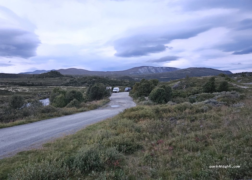 Prima plek, afslag van E6 zandpad goed begaanbaar. Hopelijk gaan we morgen Muskusossen spotten bij Kongsvoll stasjon, moet mooie wandel route zijn.