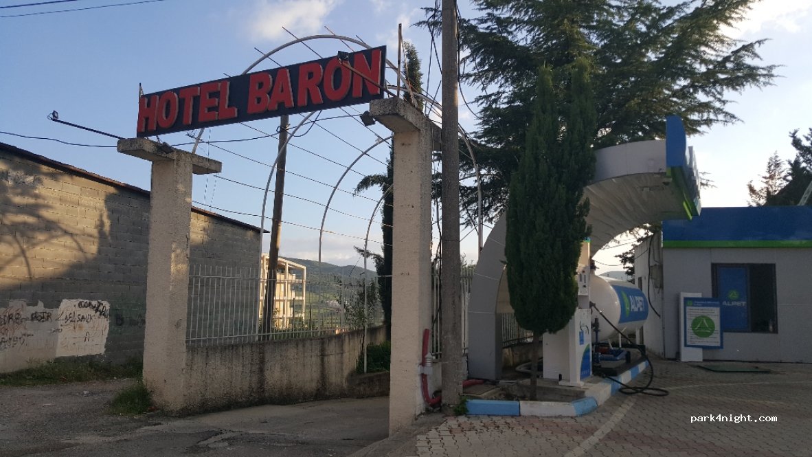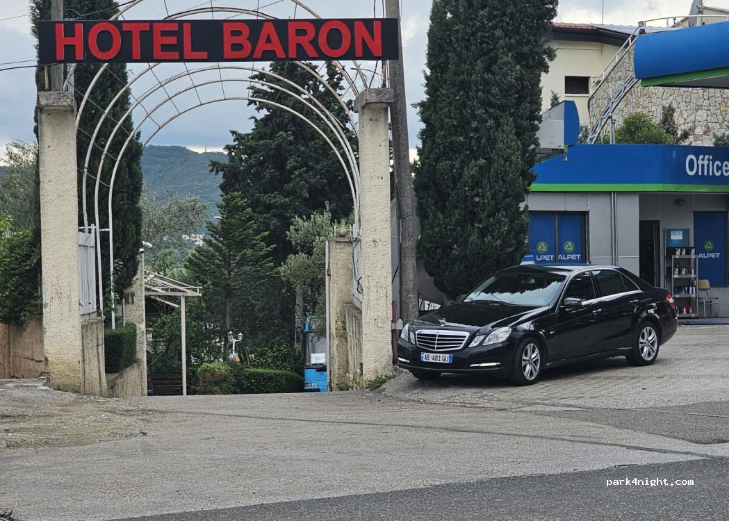 Parking gardé juste à côté de l'hôtel Baron, très pratique pour rejoindre Tirana centre en bus les deux gardiens charmants faisant tout pour nous aider ; possibilité douche et vidange cassette à l hôtel nous recommandons