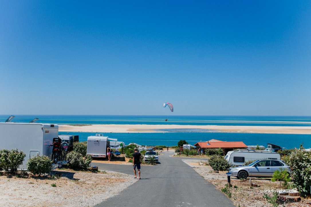 Camping avec vue exceptionnelle sur l’Ocean, le Banc d’Arguin et la Dune du Pilat. Accès direct à la plage (dénivelé 60m) et à la Dune du Pilat. Lieu calme et verdoyant. Pistes cyclables accessibles depuis le camping et location de vélos à la réception. Services ouverts toute la saison; restaurant, épicerie, bar, animations, terrain multisports… Emplacements avec électricité 16amp, sanitaires propres.