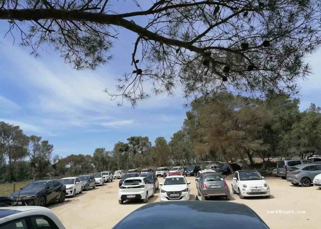 Parking parfait pour la nuit, indispensable d'y arriver la veille pour aller à la cala de turqueta le lendemain !! Petit parking, donc plein dès 7h/7h30 du matin!! Douche possible au niveau du snack : 1€ la minute, mais top car peu de plages le propose ! Accès à la plage : prendre le chemin principal tout droit, 15 min à pieds, accessible en poussette (ne pas prendre les chemin bleu ou rouge).