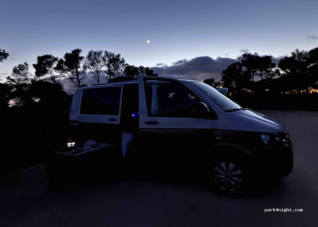 El lugar es idóneo para ir a la cala turqueta al día siguiente. Tener cuidado donde aparcar a la noche, buscar un sitio donde no se moleste, a la mañana hay dos encargados de organizar los coches en el parking y a veces tienen que despertar a las autocaravanas y decirles que se cambien de sitio, he visto como muchas se enfrentaban a los organizadores. Bastante suerte tenemos por dormir ahí.