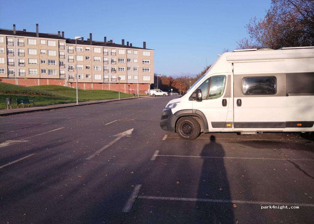 simple large quiet carpark that's gull of cats ! we chose here as stop 6 of walking the Camino Englese. small town with bars and Cafes, large supermarket within walking distance.
