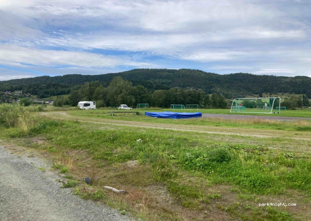 Wir waren an einem Sonntag hier und es war niemand auf dem Sportplatz. Es war ein spontaner Fund als Ausweichmöglichkeit für die gesperrte E6 (bis Ende Oktober von 18-6Uhr). Der vordere Parkplatz ist sehr groß, der hintere mit Blick auf den See ist recht klein (max. Platz für 2-3 Camper). Die Aussicht vom hinteren Parkplatz ist wunderschön und es ist sehr ruhig. Nur für autarke Camper.