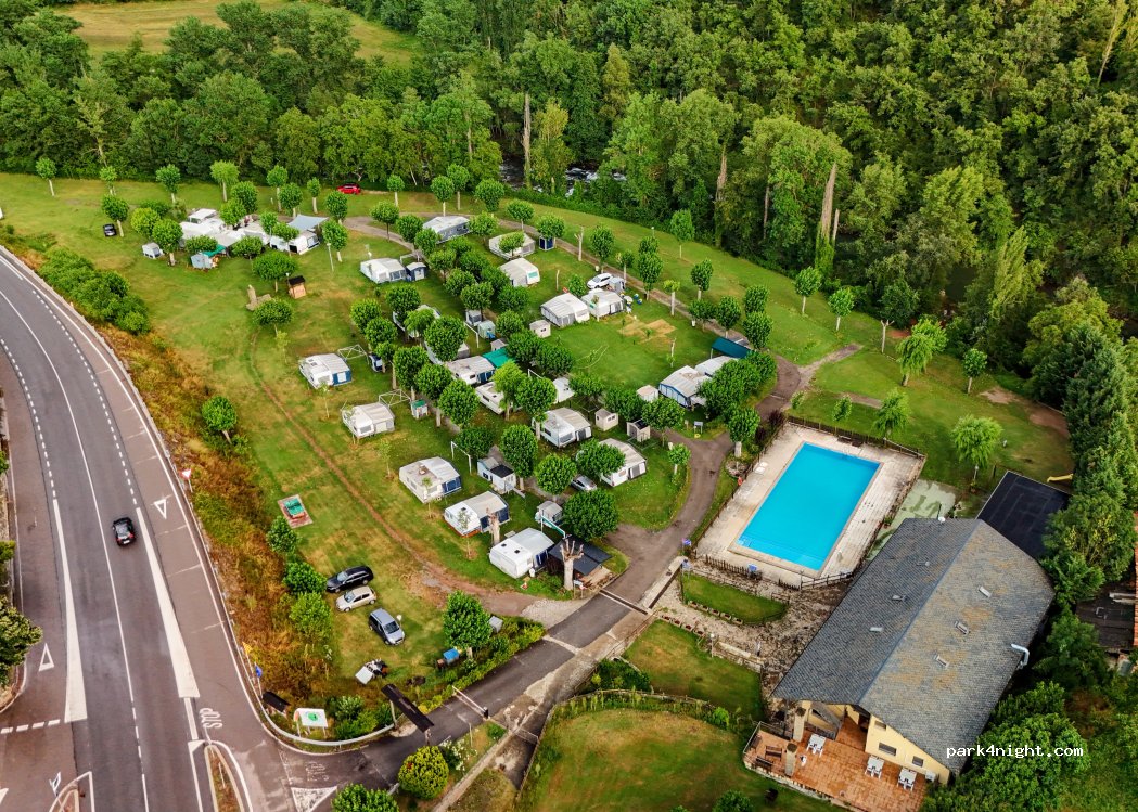 Petit camping, sympa avec sa belle piscine et son bordure de rivière. Pour un camping-car avec électricité deux adultes, un petit chien nous avons payé 35€. Sanitaire propre. Pas de vidange pour les eaux grises.