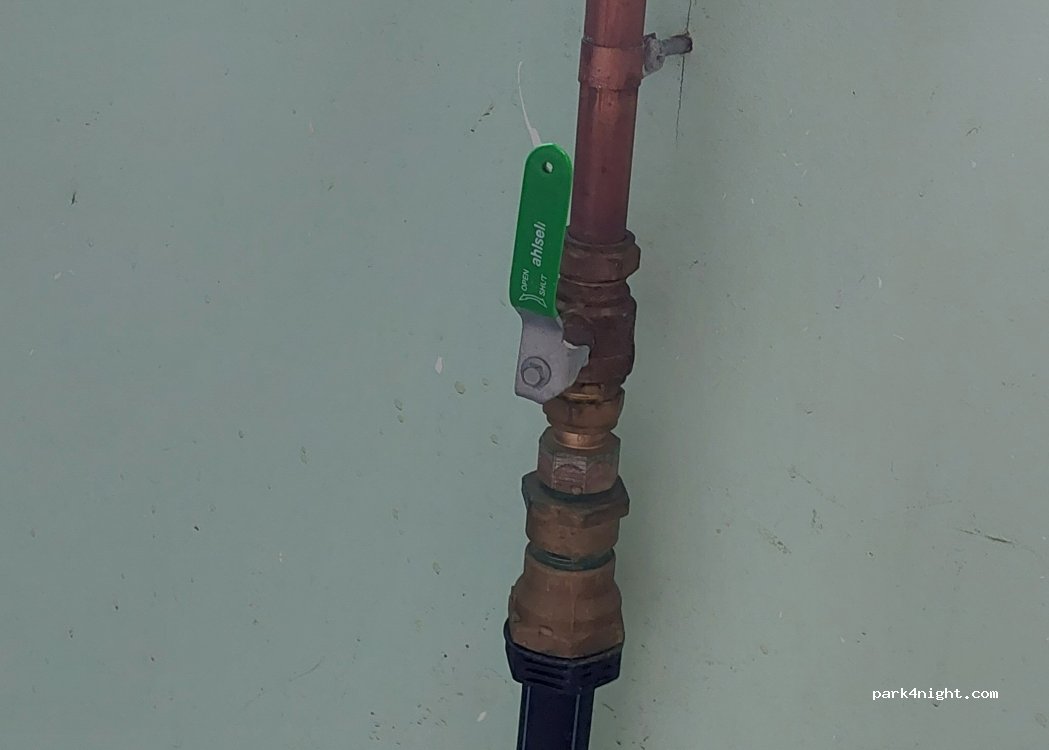 DUSCHE: Ich stand unter der Dusche, aber es kam kein Wasser. Dann habe ich entdeckt, dass man den Hauptwasserhahn (grün) aufdrehen muss. Siehe Bild. Nach dem Duschen habe ich ihn wieder zugedreht.