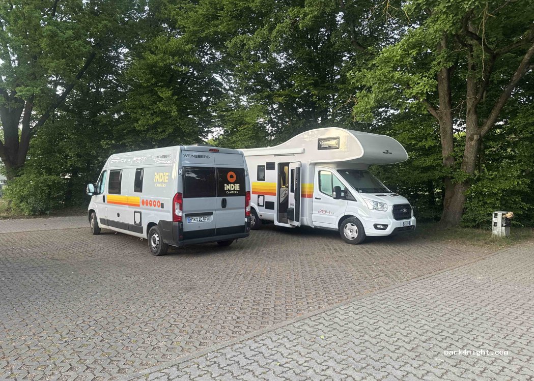 Aparcamiento público para aproximadamente 30 casas móviles (la parte trasera se amplió a partir del 13 de septiembre de 2025) en las afueras de la ciudad, junto a un gran parque. El aparcamiento está convenientemente ubicado y conectado con el transporte público (autobús), pero no ofrece ningún servicio. La estancia máxima es de tres días. Hay varios bares y restaurantes cerca.