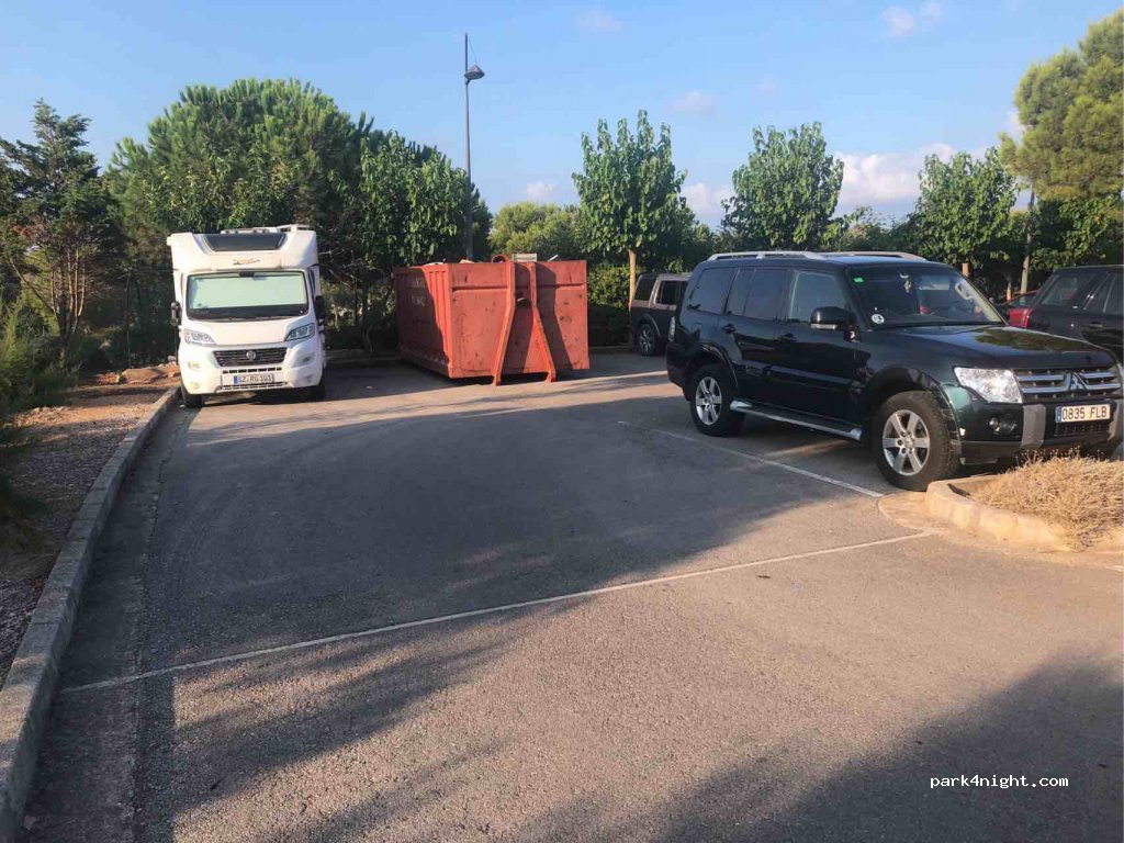 En el párquing no hemos podido aparcar porque llevamos una AC de 7m, pero la hemos aparcado en el aparcamuento en linea que hay al lado.