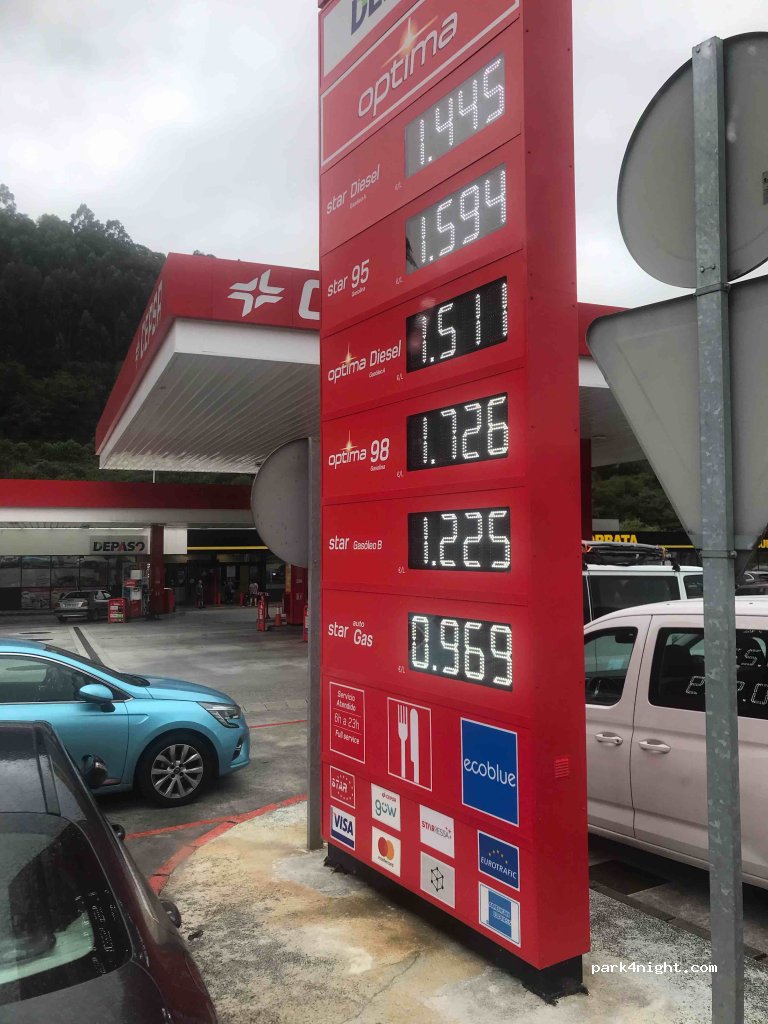 Estación de servicio, servicios las 24 horas hasta las 00:00 (duchas para todos "no solo camioneros", restaurante y área infantil, amplio estacionamiento ideal para pasar la noche. Dispone de GLP.