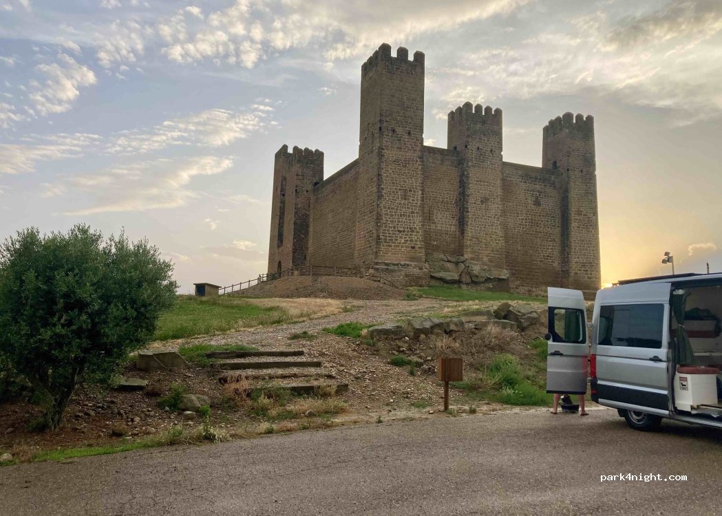Super endroit pour y passer une nuit tranquille au pied du château, éclairé la nuit , belle vue! Ville sympa église à visiter, d’autant plus en cette période de noël! Merci pour l’endroit, manquerait cependant des poubelles..! Aux portes du désert de bardenas, que nous avons pu rejoindre dès le lendemain matin!