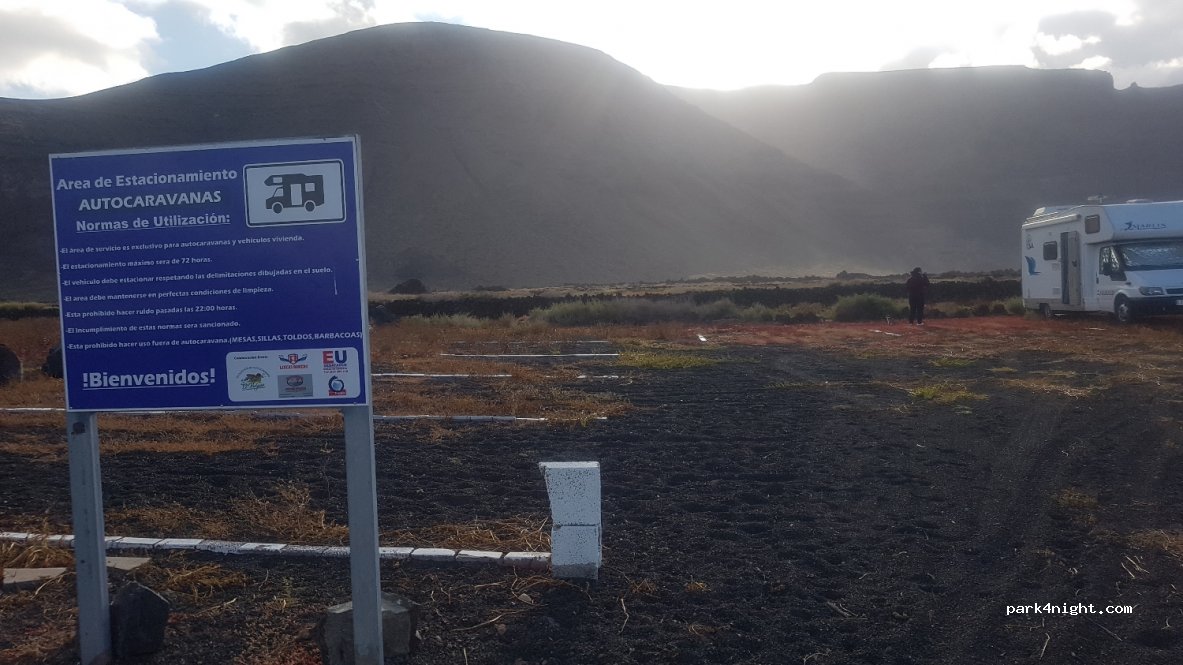 Aparcamiento muy amplio, supuestamente para los clientes del ferry de Líneas Romero, pero llegamos a las 20:30 y la entrada estaba abierta. Ya había otras furgonetas dentro, y no vi a nadie por la mañana.