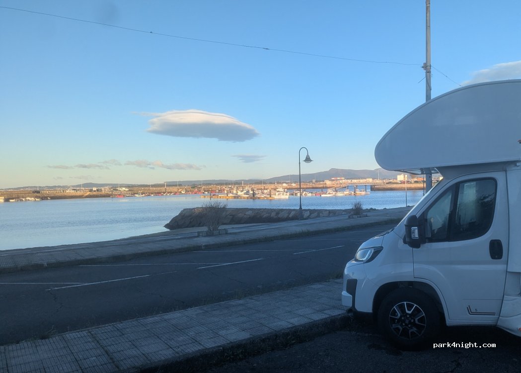 Una zona perfecta para descansar y creo que se puede pernoctar. Miércoles y sábado hay mercado y está prohibido estacionar. Justo en el pueblo, a 5 minutos del barrio de pescadores y a 10 minutos del centro. Parque infantil super chulo enfrente. Sin servicios