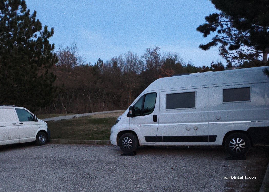 Possibilité pour les +de 1m90 de se garer avant la barrière, petit parking qui tient 3 fourgons facile. Vraiment au top pour une soirée et une nuit,em endroit hyper calme ..