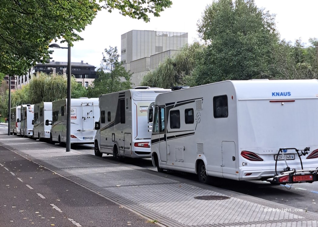 Buen lugar para aparcar, pernoctar y visitar la cuidad. Otros aparcamientos de la zona tienen el problema de tener cierta pendiente y sobresalir de las líneas (en la calle o acera) al ser en batería, aquí el aparcamiento es más plano y en línea. Inconveniente: mucho ruido de vehículos.