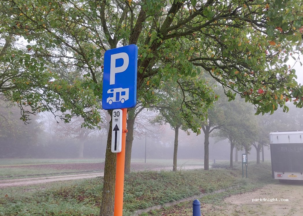 op de parkeerplaats zie je borden voor camperplaats.