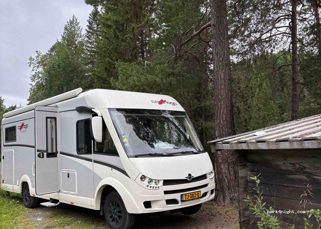Small layby next to quiet road overlooking the river. There is a wooden hut, benches and firepit. The parking area is quite small so no more than 2 campers max. Very peaceful night. Can hear the river and there is a Trainline nearby. It occasionally toots it's horn.
