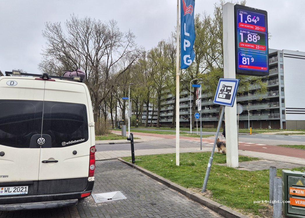 The official place to drain/pour water and empty the toilet cassette. Can be used for free if you buy fuel. The drain is not blocked, the water tap opens with an ordinary square key. There are also 2 washing machines and a dryer on site! An excellent place to prepare for a visit to Amsterdam.