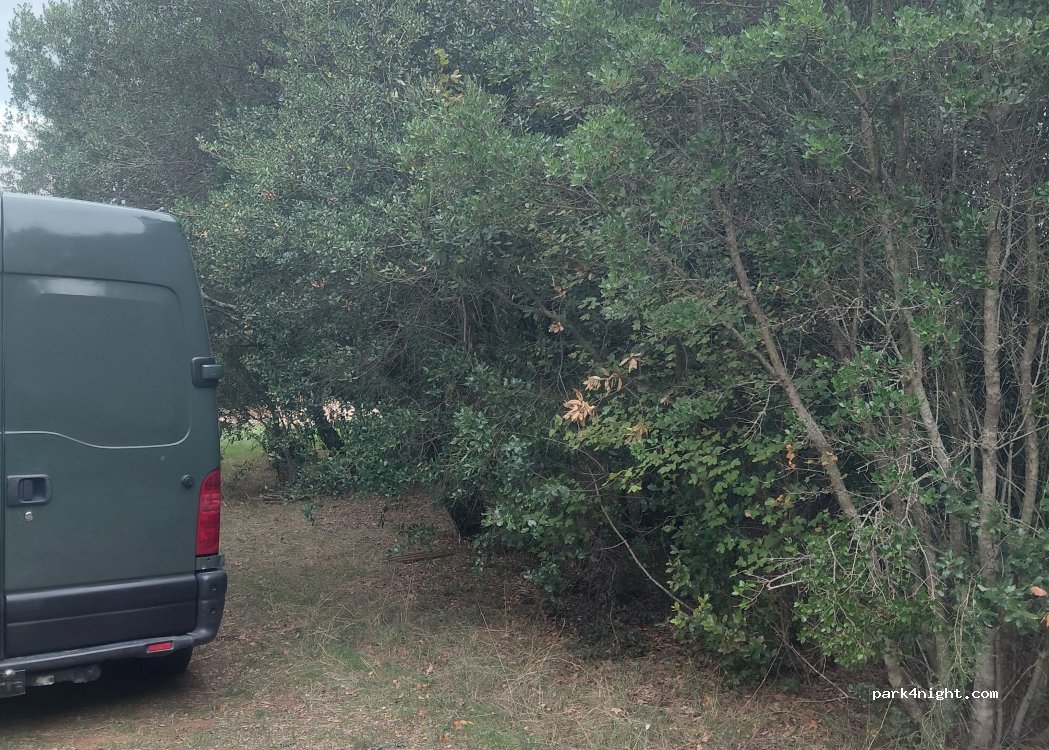 Le soir où nous y sommes allés, beaucoup de vans et il semblerait un anniversaire. Nous avons rebroussé chemin et nous sommes installés entre les arbres en amont du spot afin de nous éloigné du bruit. De l’autre côté de la citerne d’eau. Terrain assez plat. Aucun service.