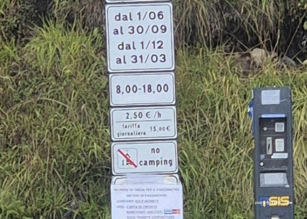 Confermo. Si paga dalle 8:00 alle 19:00 € 4,00 per tutto il giorno. Mentre la notte non c'è alcun divieto. Di giorno si riempie di auto. Si tratta del parcheggio dove arriva il primo tratto della funivia da Alleghe. Ottimo panorama sul Civetta. Nessun servizio.