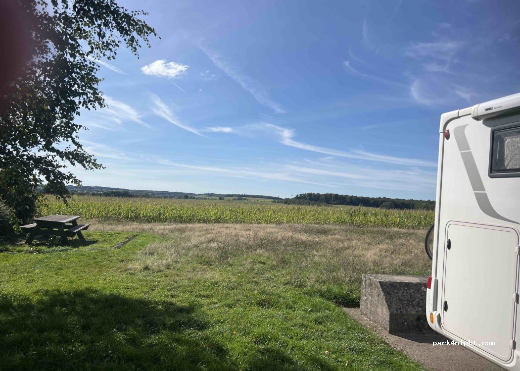 Assez tranquille, table de pique-nique, belle vue sur la campagne, top pour une nuit