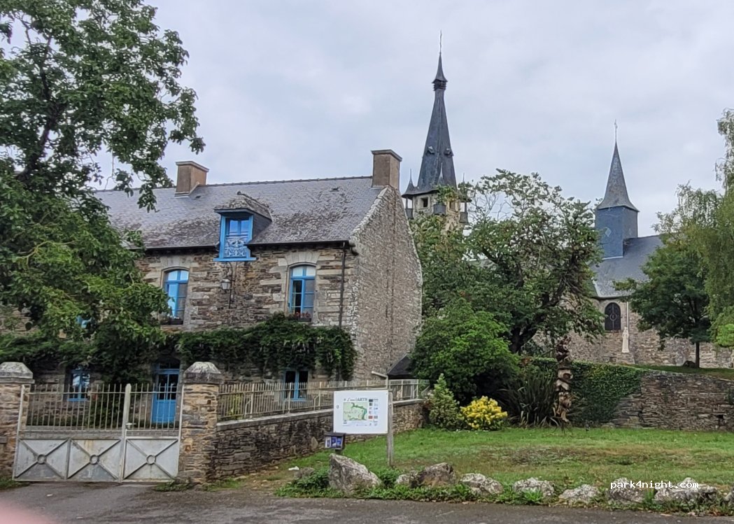 A tranquil location next to the Villaine on the edge of this beautiful village. However, the neighbouring former school may be extremely noisy at weekends, we experienced a party that went throughout the night until 0630. The church bells also begin at 0700. Thank you to the local community & the Mairie for providing this lovely parking area, it really is beautiful & tranquil 'most of the time'.