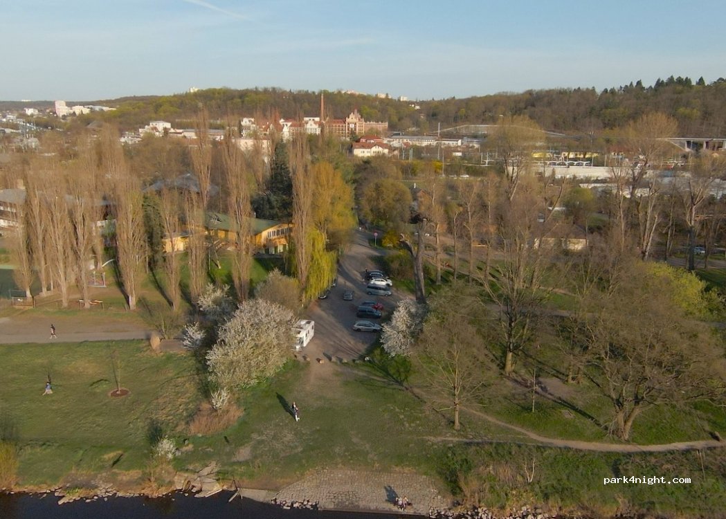 our most favorite place in Prague. good water to swim, very nice park, possibility to make fire and amazing children playground for free near. on the playground there are free toilets and possibility to discretely (!) fill water barrel. please behave well, i hope they will not close it soon because of too much caravans. police know about us and they are often checking. they tolerate. for now.