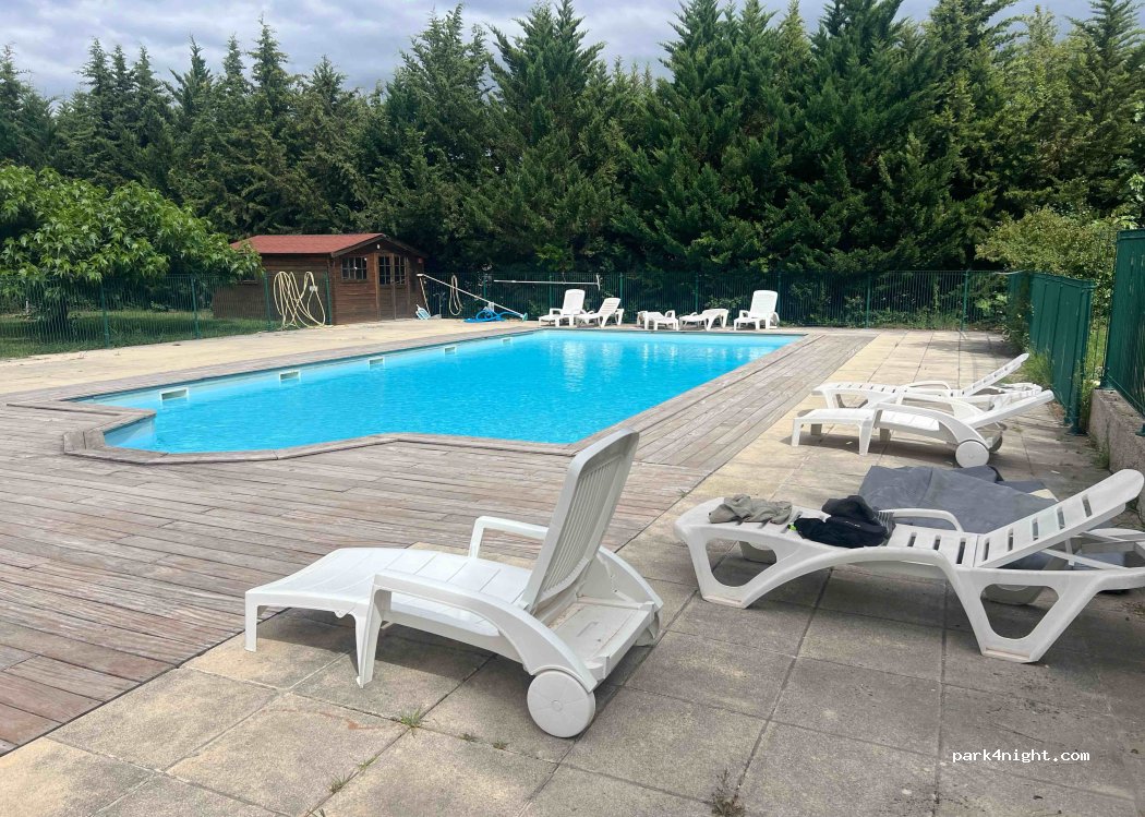 Camping a 1h de Carcassonne. Ducha,Aseos,Wc,lavadora y PISCINA! Camper +2 personas+perro 22€ Ambiente tranquilo. Muy recomendable