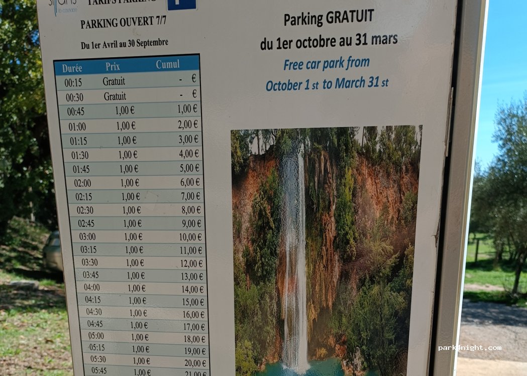 En effet le parking est censé être payant, je suppose en saison car à notre arrivées les barrières étaient levées. Il faut dire aussi qu'il y avait uniquement 2 voiture et un camping car. Nous y stationnons pour visiter le petit village charmant et aussi la cascade.