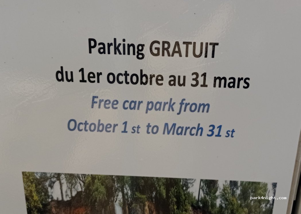 c'est la fin des parkings gratuits, je mets un zéro à la municipalité pour son absence et interdiction de parking pour les camping-caristes ( camping-car, fourgon, van). Je recommande de poursuivre sur le lac de Sainte croix. il ne faut pas laisser un centime à cette municipalité.