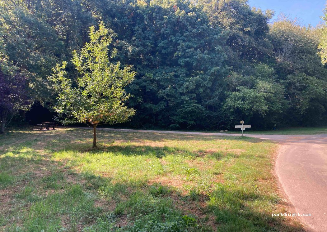 petit parking au début d'un chemin de rando et d'une source. Calme absolu. Zéro circulation, chevreuils. NB : campeurs ne laissez pas vos morceaux de pq dans la forêt !