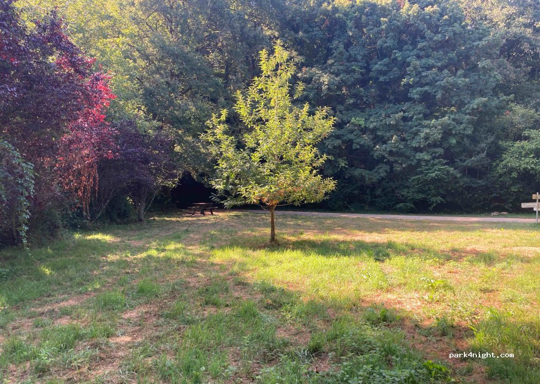 Super sympa pour pause pique-nique et dodo . Hauteur supérieure à 2,80m, nous faisons 3,30m et passons sans problème. Joli bois, source et balade. Très bien pour bivouac sur la route .