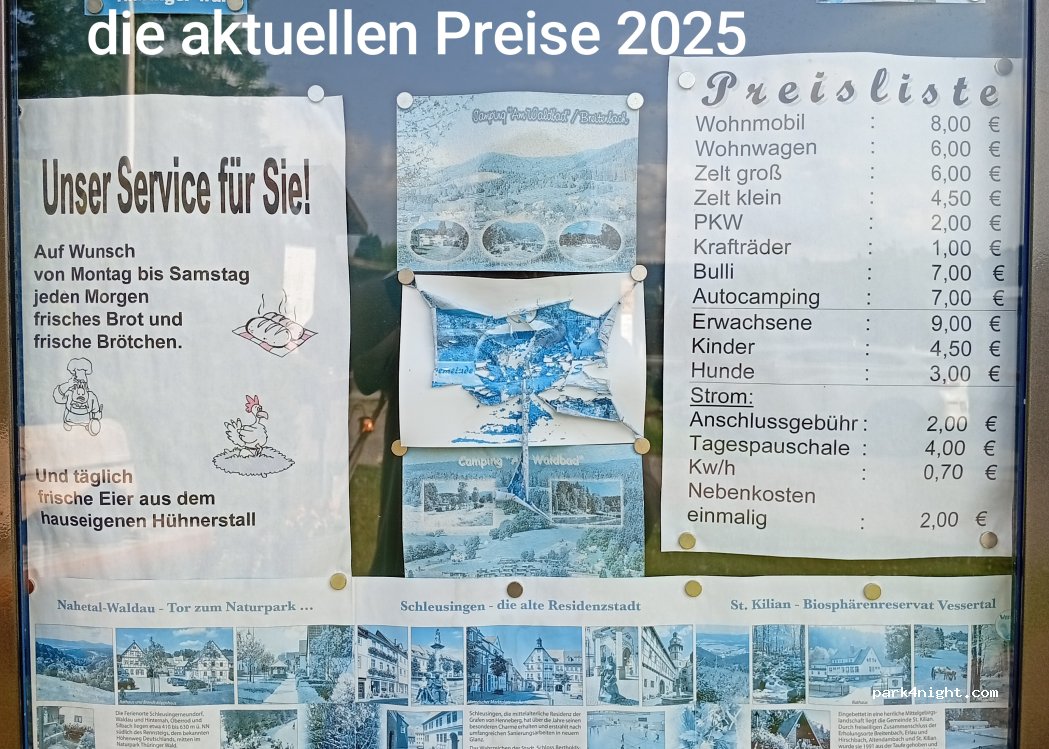 Sehr schön angelegter Platz. Im Waldbad kann jederzeit geschwommen werden. Sehr freundlicher Campingplatzbesitzer, der gerne mit einem plaudert. Idealer Ort zum Wandern und Radfahren. Das Touristinfo in Schleusingen muss besucht werden kompetente nette Betreuung.