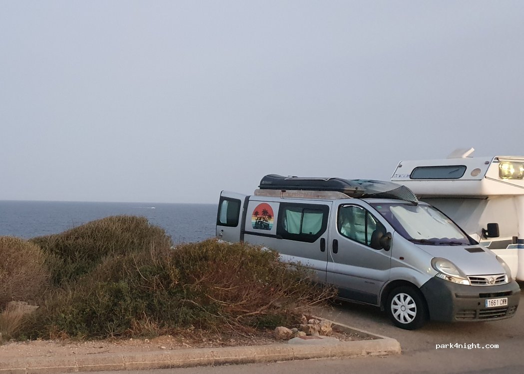 Nice free parking with a beautiful view of the sea. We have visited this spot many time when holidaying in Portacolom, it's a great Campervan stopover, no passing traffic and no nearby houses. From time to time a few tourists and joggers. No infrastructure. For motorhomes up to 6m suitable.