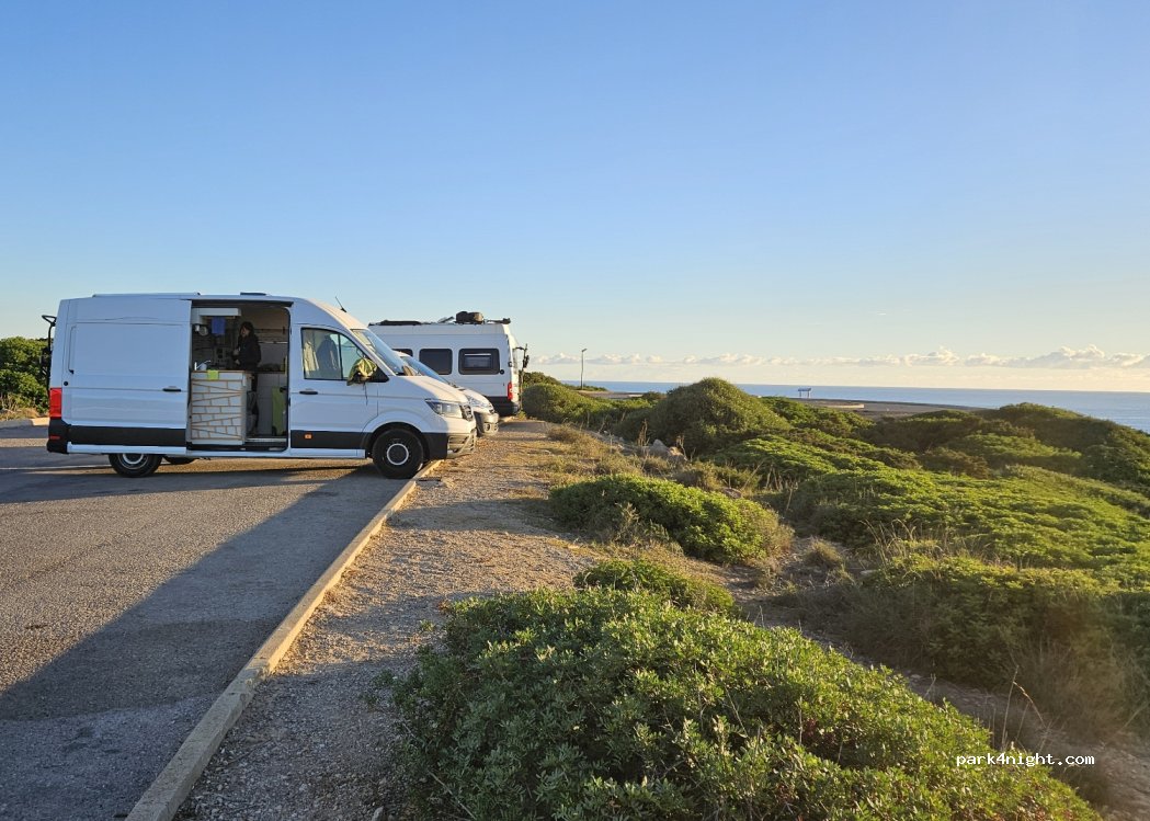 Schöner Ausblick übers Meer, ein bisschen Verkehr, da nach den Stellplätzen ein kleiner Wendepunkt kommt. Einheimische Camper am Abend, die dort mit Meerblick essen. Alles sehr nett. Man kann am Meer entlang zu einer Bucht laufen, dort gibt es auch noch Stellplätze, siehe Karte auf park4night. Ist empfehlenswert.