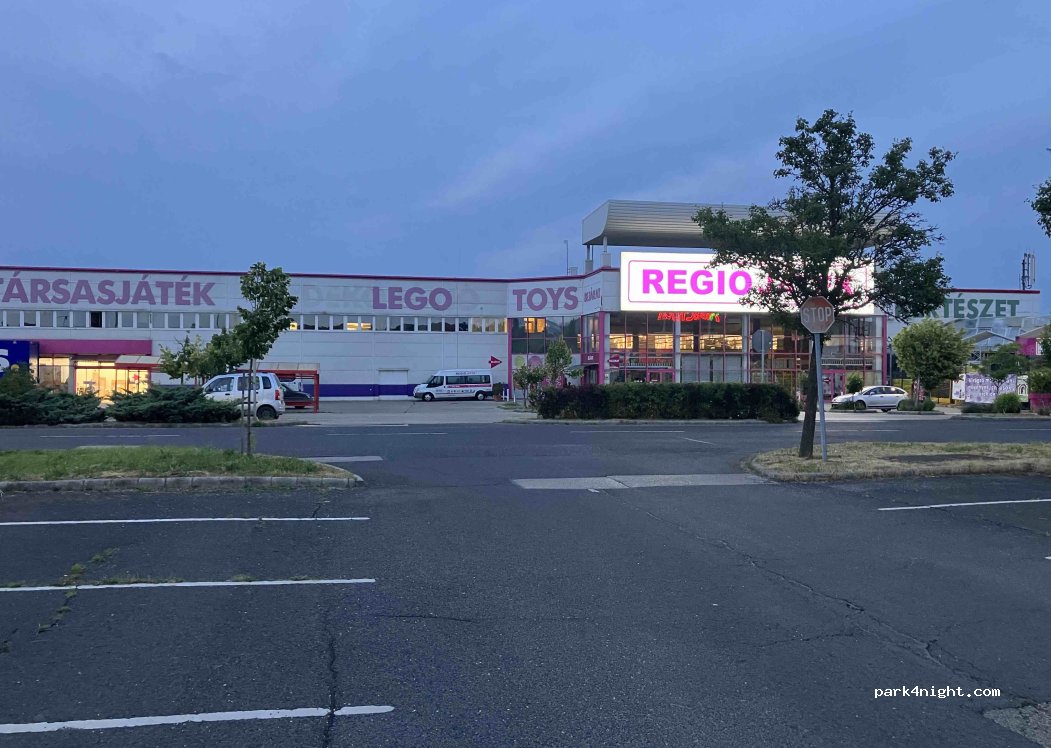Неплохое, достаточно тихое место. Стоял напротив здания Regio Jatek. В Ашане свежая выпечка, бесплатный вай фай, туалет. Есть ресторанный дворик. Вайфай ловит только внутри здания, на парковке очень слабый сигнал.