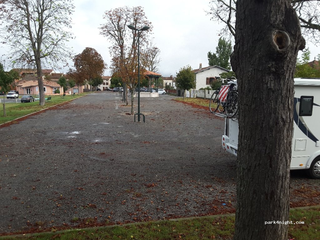 Rustige plek. Alleen wat mensen die honden uitlieten gezien. Geen lawaai van drukke wegen. Redelijk vlakbij de snelweg tussen Tarbes / Toulouse. Goed te bereiken met grote camper. Voldoende plekken. Geen voorzieningen.