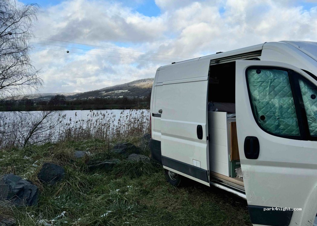 Great spot to relax for a night and morning. Few people on a Saturday morning to fish or just relax by the water. Noise wasn’t really an issue, unless you need cemitery-quiet to get a good night sleep. Arriving with any vehicle over 2,5m in height is no problem when arriving from the side of Merreville village (road D115b), no height restrictions there. But the other way (D331b) there’s a height restriction of 2,5 meters. Enjoy :)