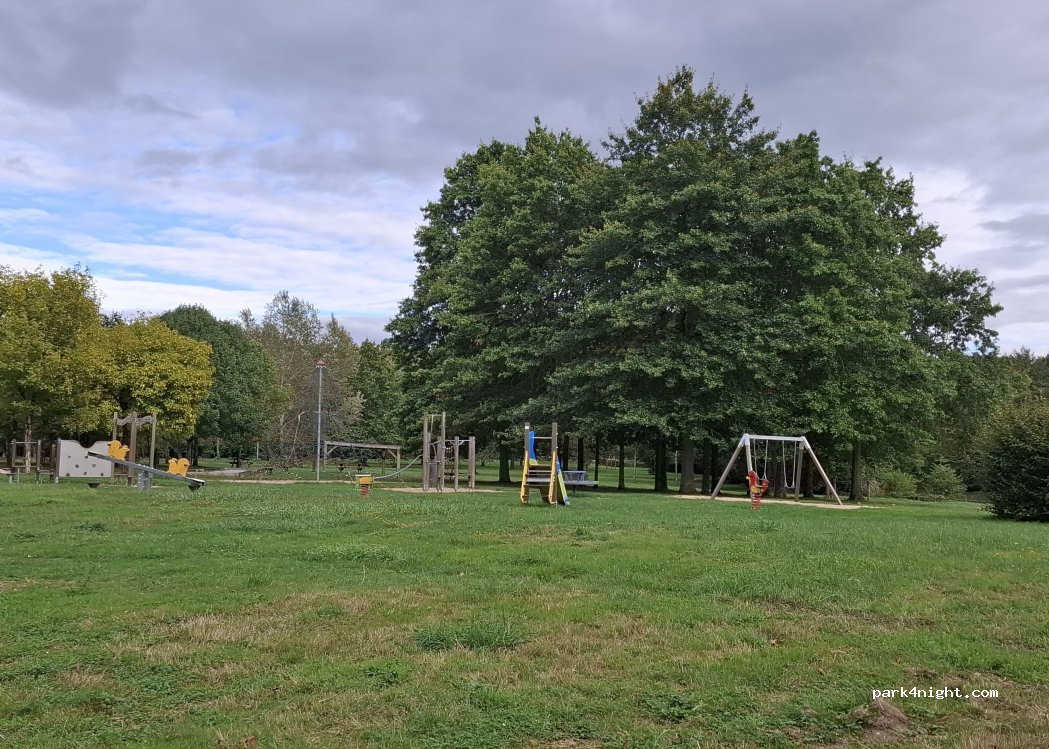 Aire de stationnement au calme, avec étang, aire de jeux sur une vaste étendue d’herbe, borne non utilisable en avril 2018 aucun terminal de paiement, tarif de 2.5n€ pourtant affiché pour service, par contre vidange 2 eaux ok, pas d'électricité. Bourg proche de l'aire