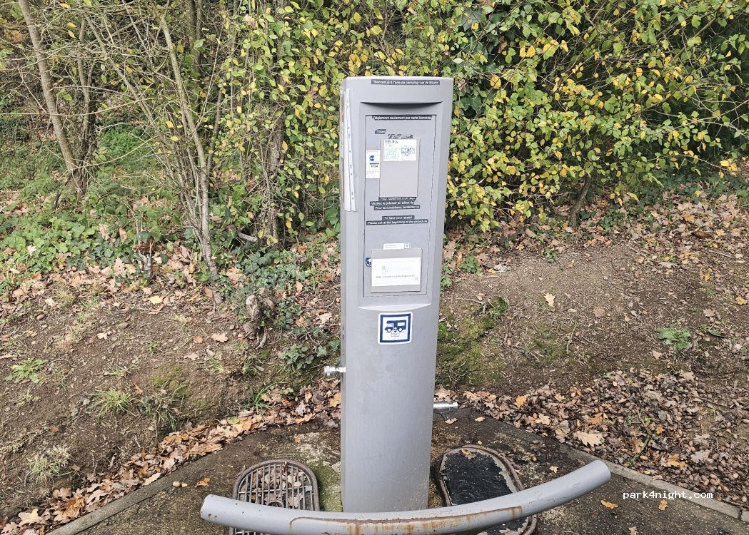 Bien pour passer une nuit. Par contre, uniquement vidange des eaux noires et grises. La borne n’est plus en service.