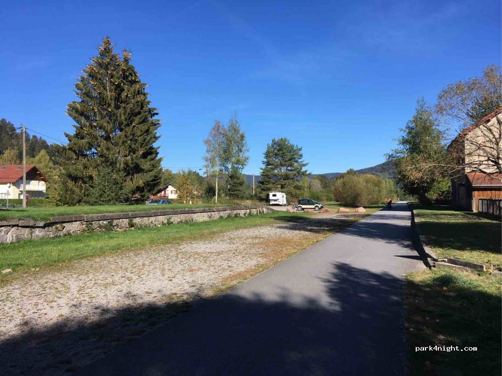 Parking next to the old train station in Nol 10 meters from the greenway (old railway line) of several kilometers. Very quiet at night. No garbage or service but all shops in Vagney at 1,5km. In Vagney, complete motorhome service area in the Super U car park.