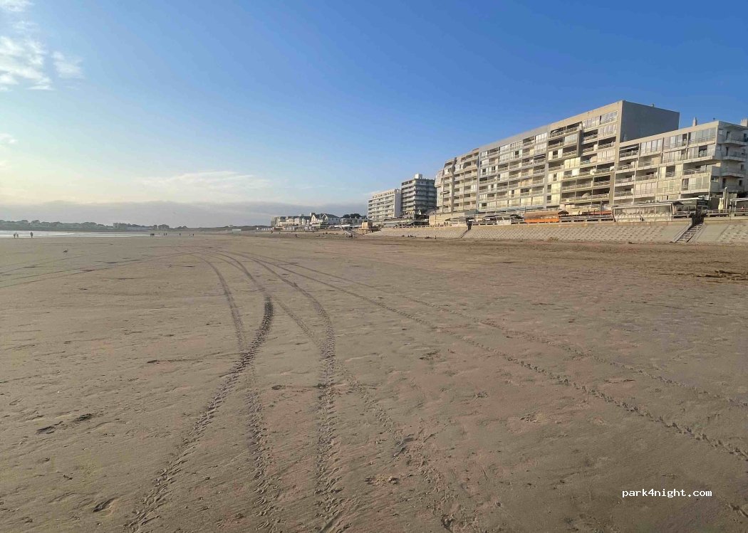 Simple parking prés de la mer. La journée, il est rempli mais se libère en soirée. Il est bien pour passer la nuit en van. Hauteur limitée 2.20 m toilettes publiques au niveau du mini golf ou de la plage. Pour le plus grand parking la hauteur est de 1,80 m