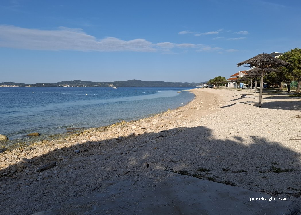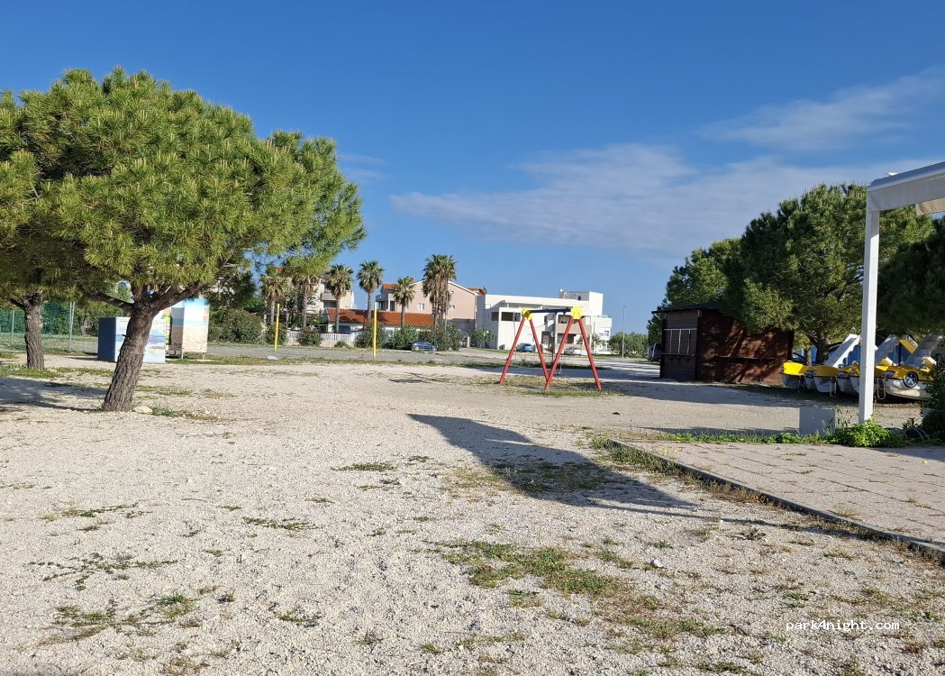 We came to this car park out of season so I do not know what this gives in high season. Very nice parking where you can park "the wheels in the water" with breathtaking views of the sunset, swimming. ? the best of the best for those who lack comfort in their Van / camper / truck, there is a marina 3 minutes walk and you will find on site laundry with very friendly staff, for 100 kuna: dried washed laundry to fold. as well as a free hot shower toilet area. and the icing on the cake, a gas station at the entrance of the marina to leave with the full