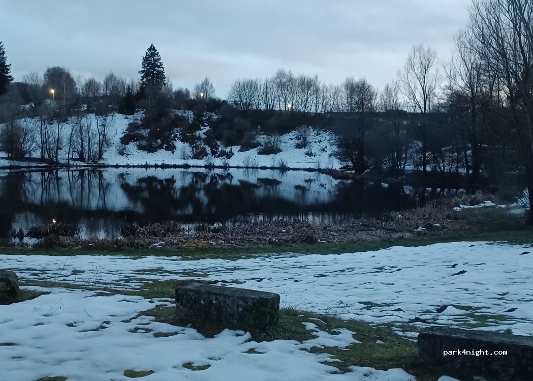 Très belle aire de repos pour la journée ou la nuit, devant un petit étang. Toilettes ouvertes mais pas testées, tables pour pique-niquer